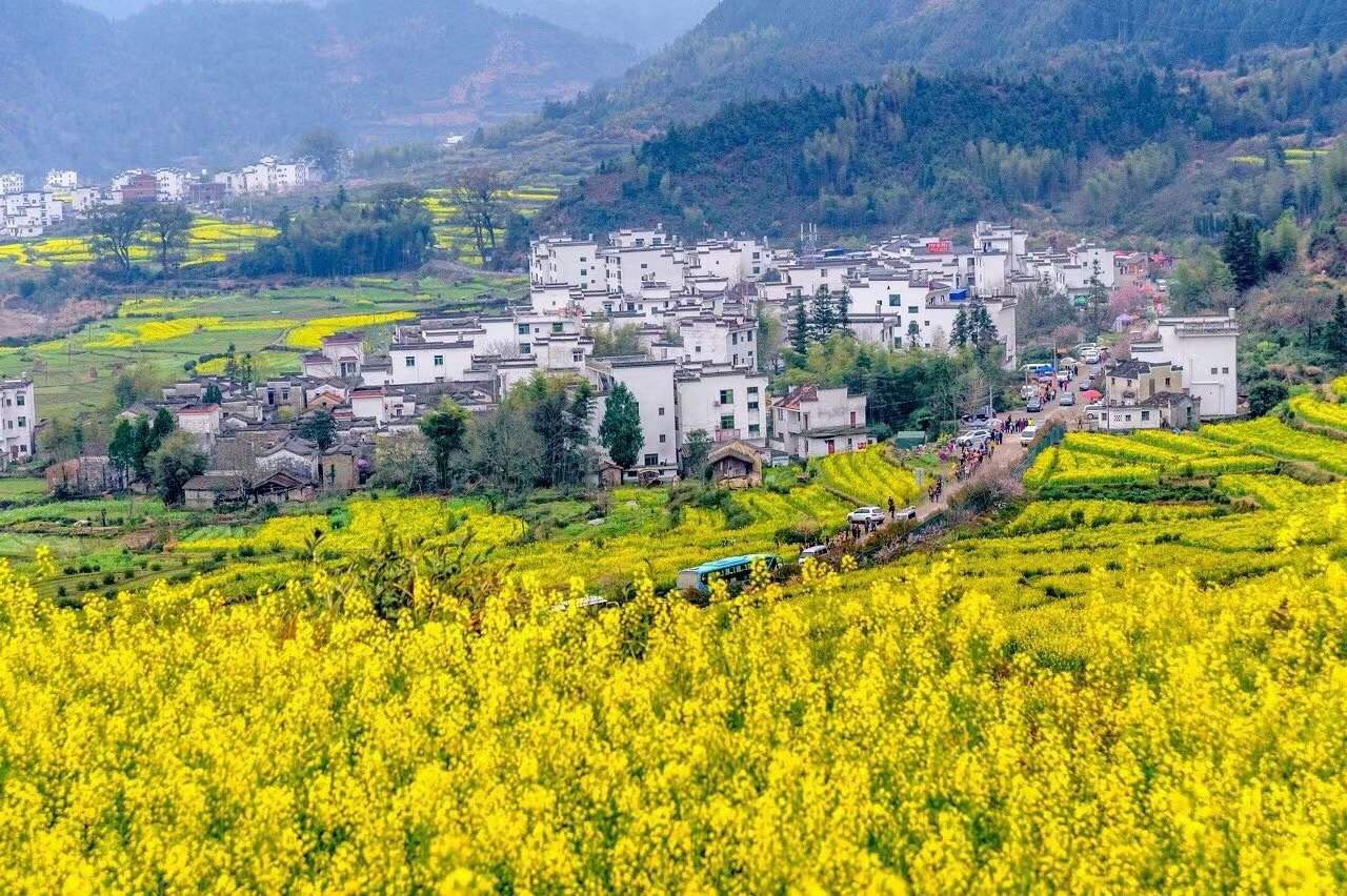 粉墻黛瓦的民居和金燦燦的菜花渾然天成